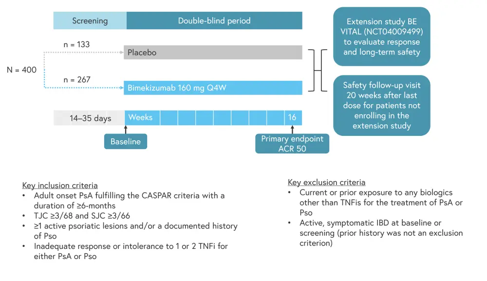Here, we summarize key data from these two trials. More information on the mode of action of bimekizumab and recent approval data has been previously reported by the Psoriasis and Psoriatic Arthritis Hub.