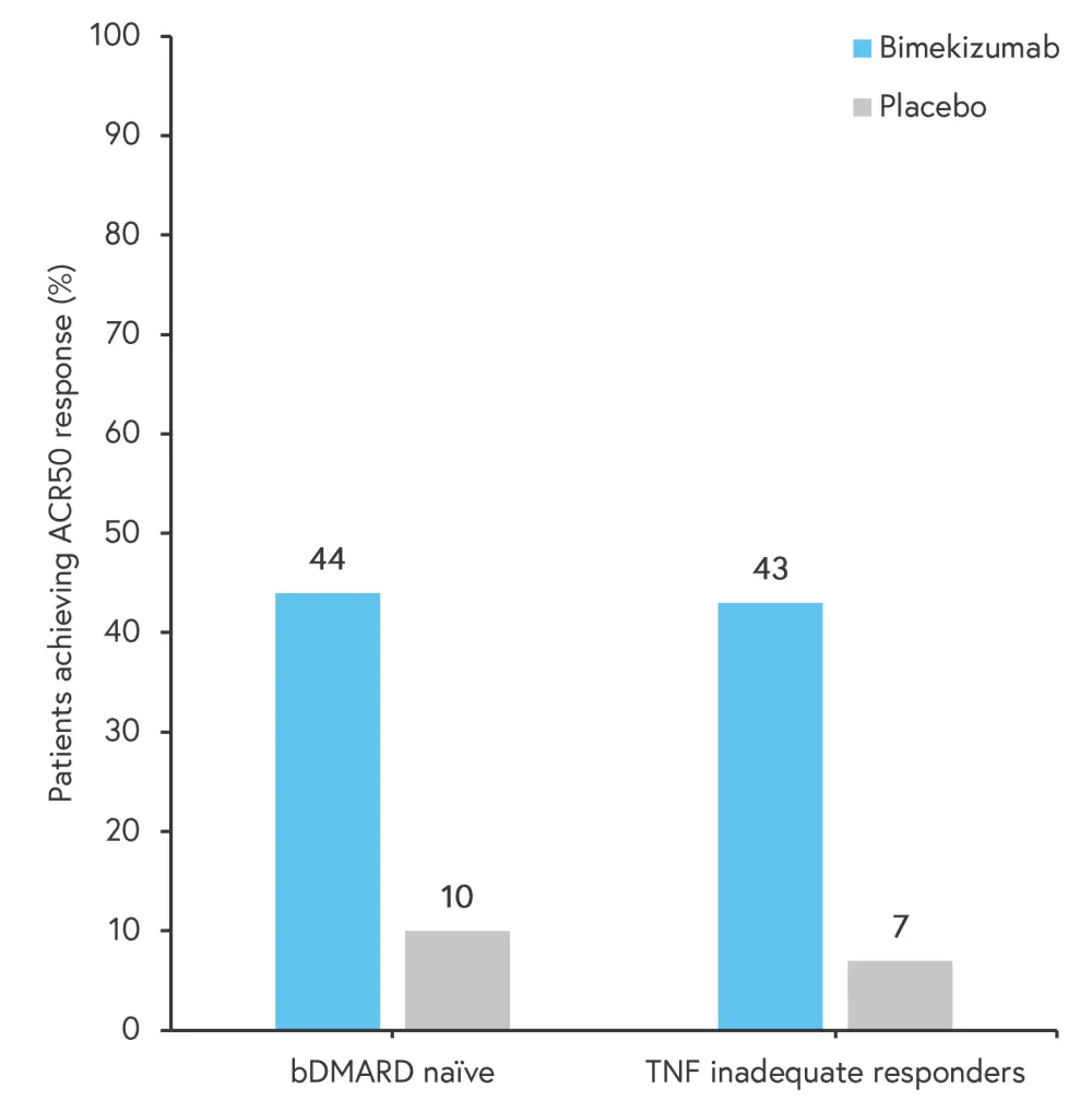 ACR50, 50% improvement in American College of Rheumatology response; bDMARD, biologic disease-modifying antirheumatic drug; TNF, tumor necrosis factor.