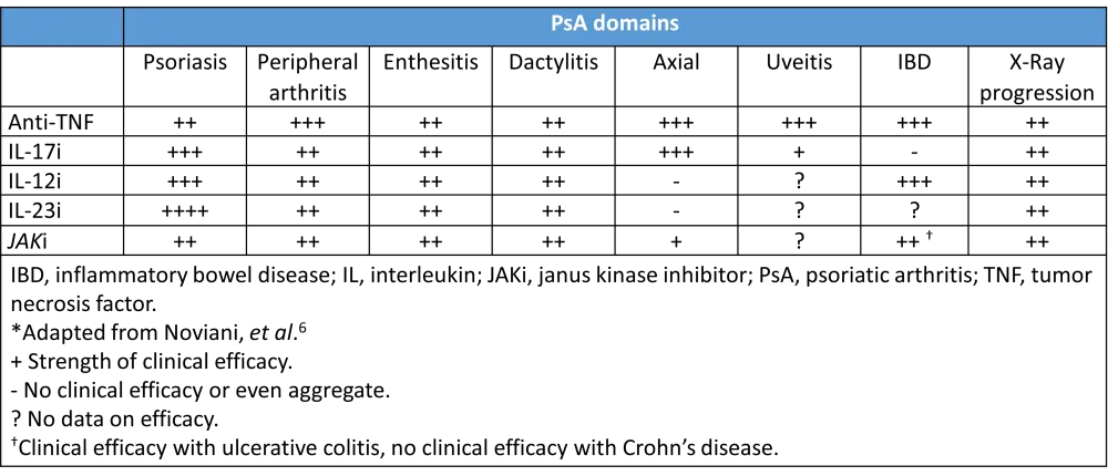 Table 1. How to choose a biologic based on the prevalent domains involved*