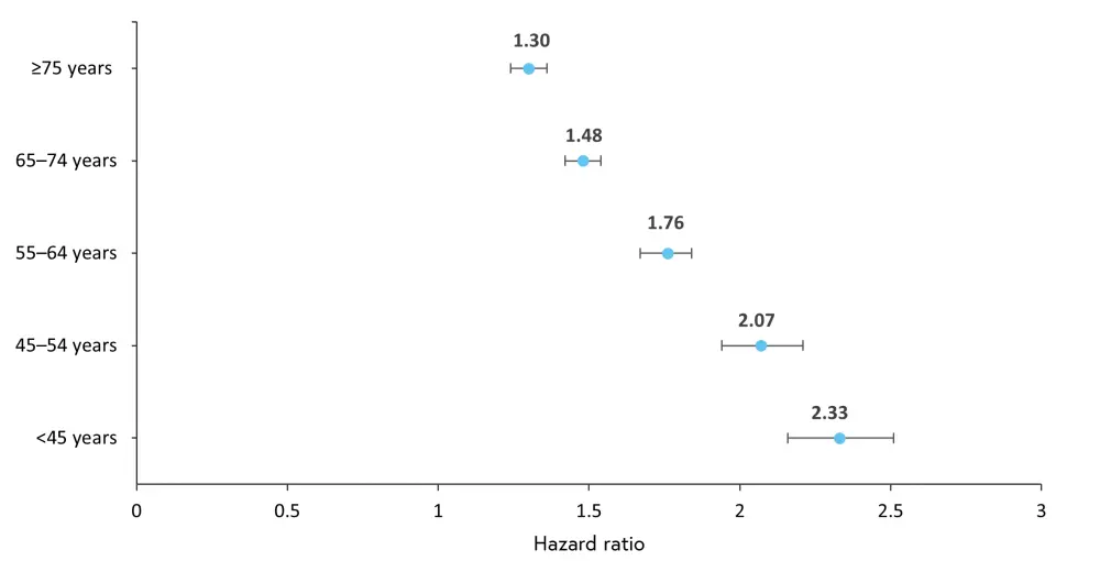 Figure 2. Hazard ratios per age group*