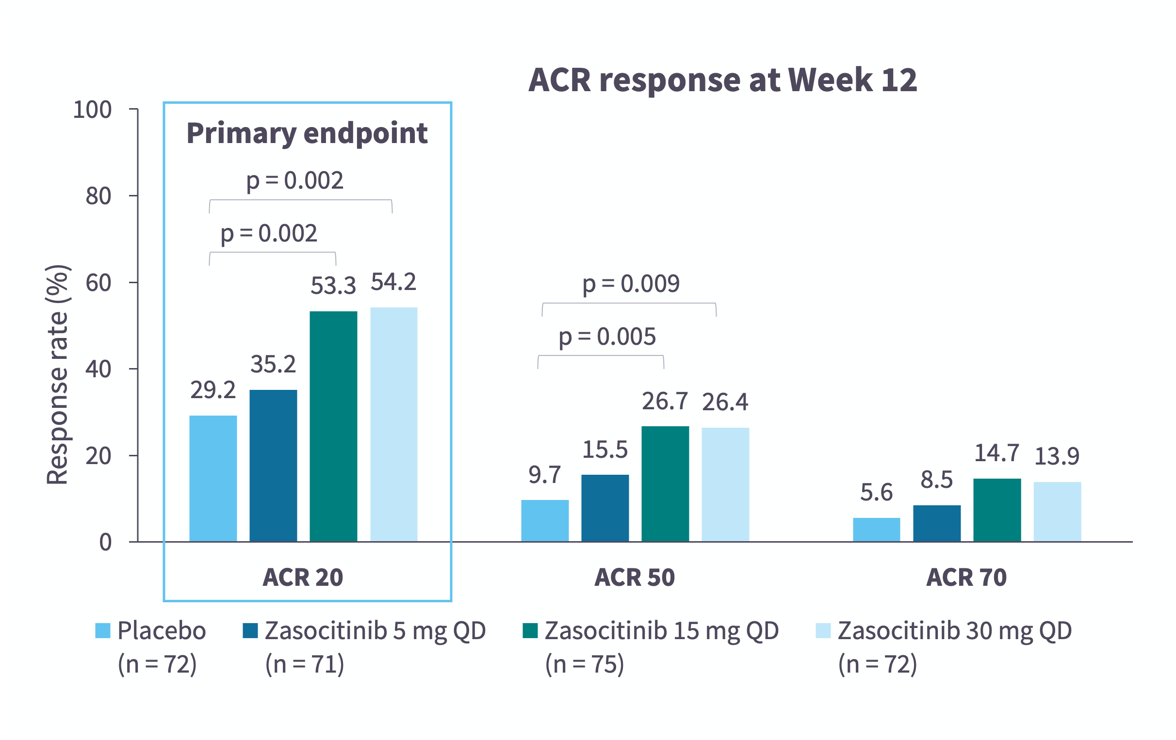 Figure 2. Zasocitinib in PsA: Efficacy results from a randomized, multicenter, double-blind, phase IIb trial (NCT05153148)*