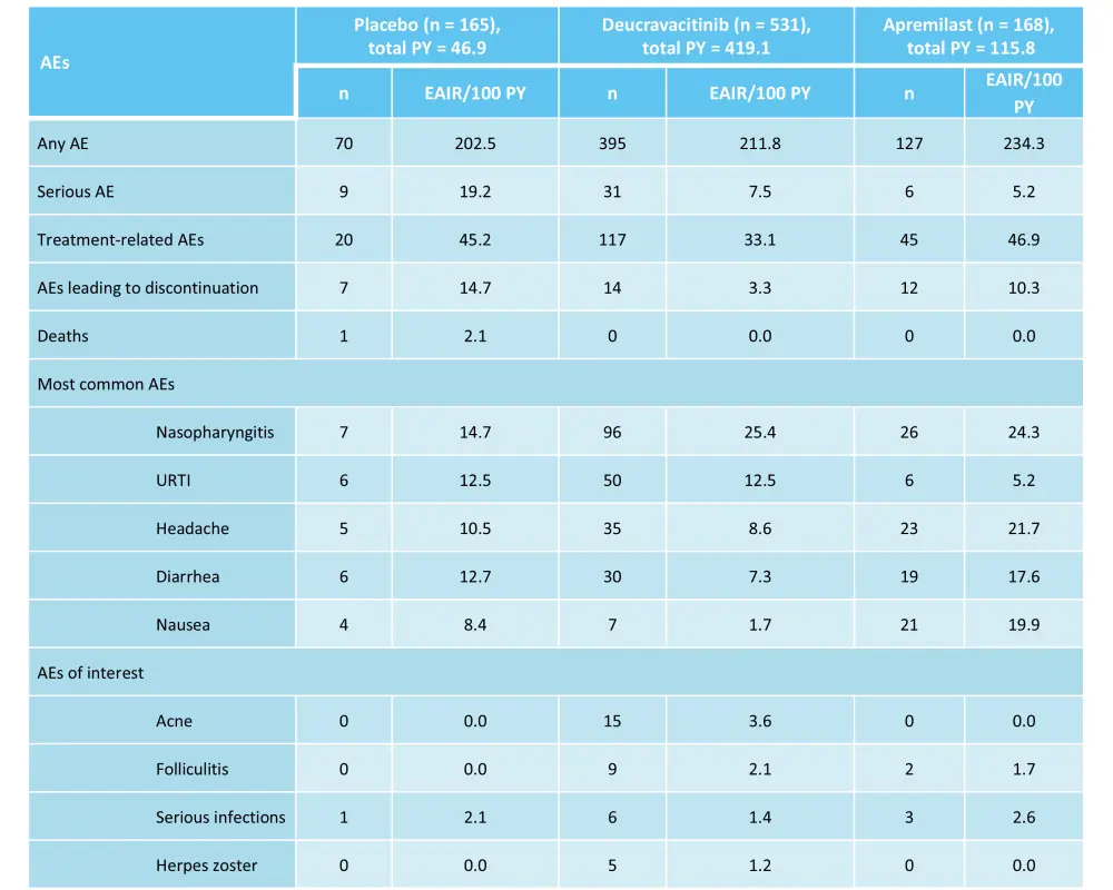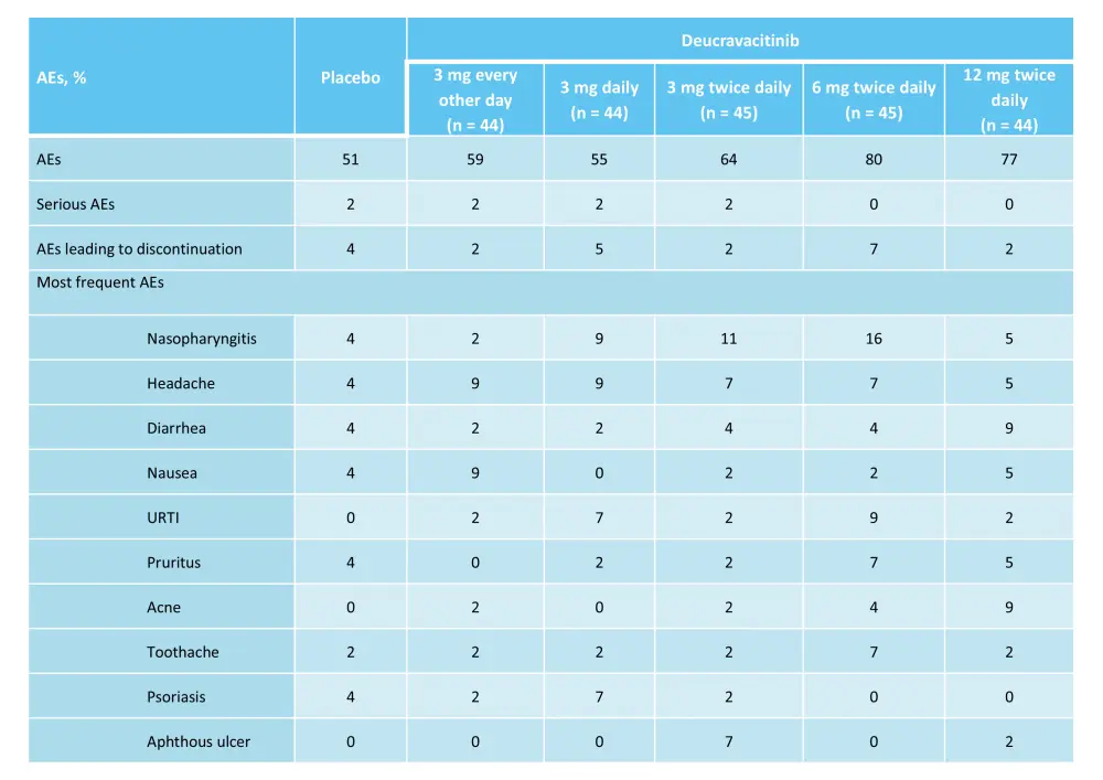 Table 2. AEs in the phase II trial (NCT02931838) of deucravacitinib*