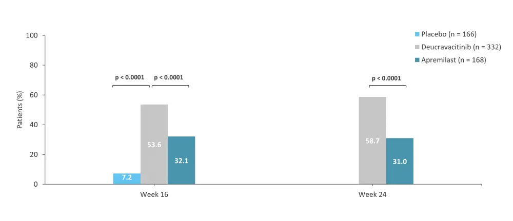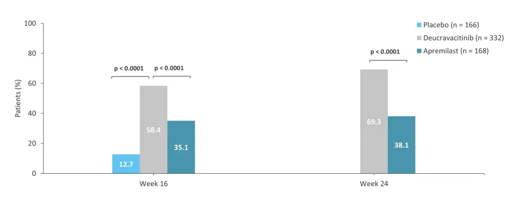 Figure 4. sPGA 0/1 at Weeks 16 and 24 in the phase III POETYK-PSO-1 trial*