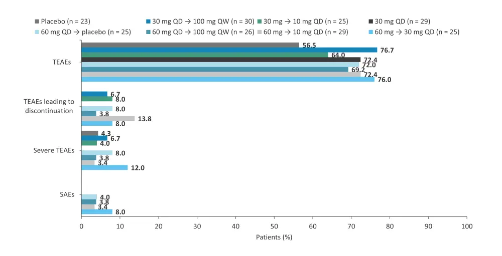 AE, adverse event; QD, once daily; QW, once weekly; SAE, serious AE; TEAE, treatment-emergent AE.