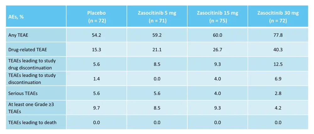 Table 6. AEs reported in the phase IIb trial (NCT05153148) of zasocitinib*
