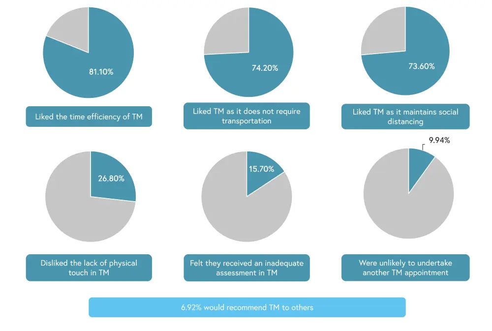 In a survey carried out during the COVID-19 pandemic, dermatologists reported delays in patient care. This impacted drug compliance, caused psychological distress, and worsened symptoms. Patient perceptions of TM, from a survey of 168 patients who attended telehealth appointments during the COVID‐19 pandemic under the George Washington Medical Faculty Associates Dermatology Department, are shown in Figure 2.